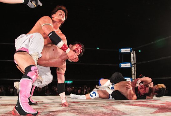 1枚目の画像は、大日本プロレスの試合で、宮本VS忍だと思います。